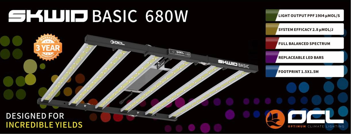 Newest LED grow light: the OCL Skwid BASIC 680 Watt: Your Ultimate LED fixture for indoor growing.